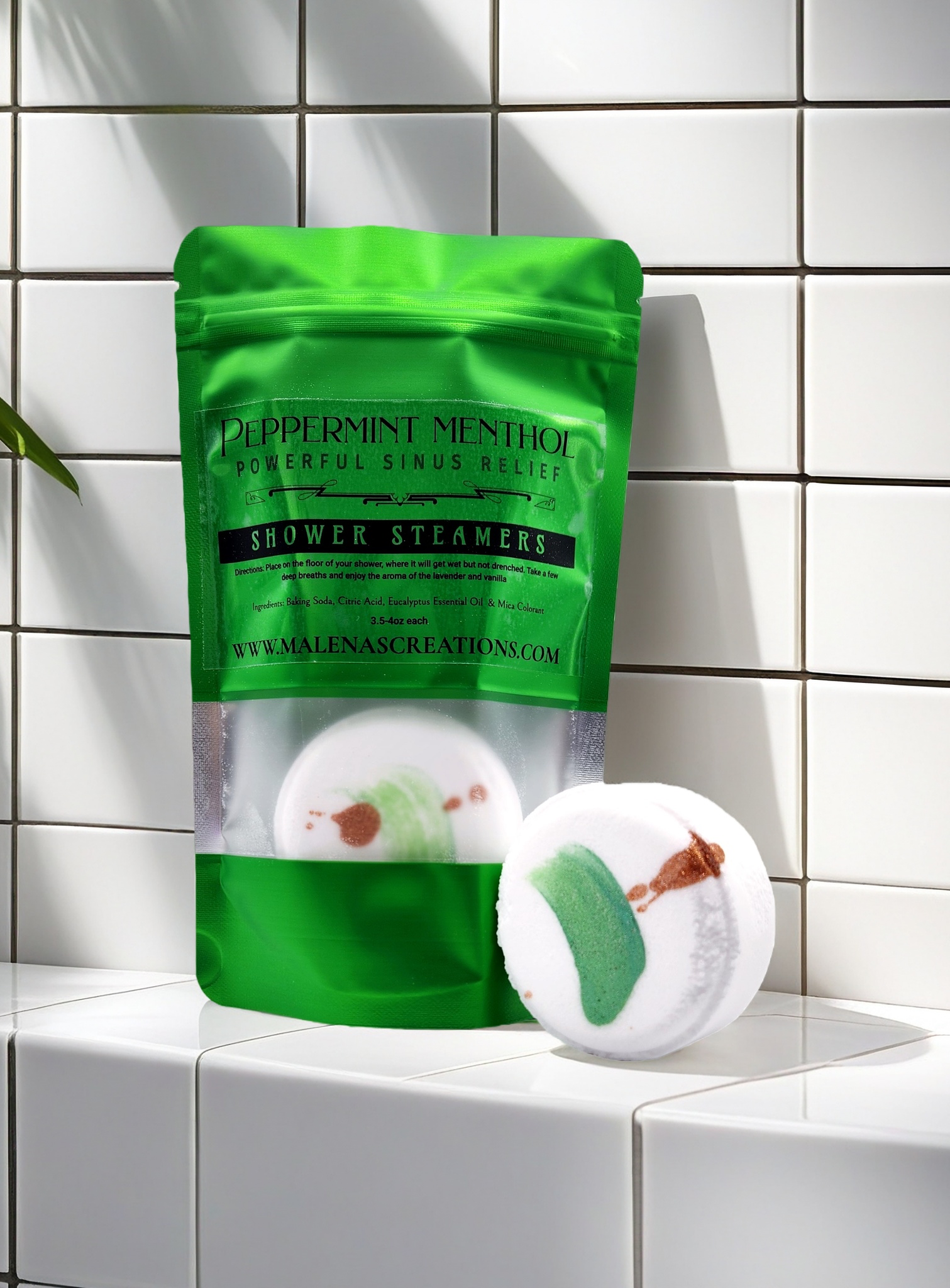 Directions: Place on the shower floor, where it will get wet but not drenched. Take a few deep breaths and enjoy the aroma of the peppermint and menthol.